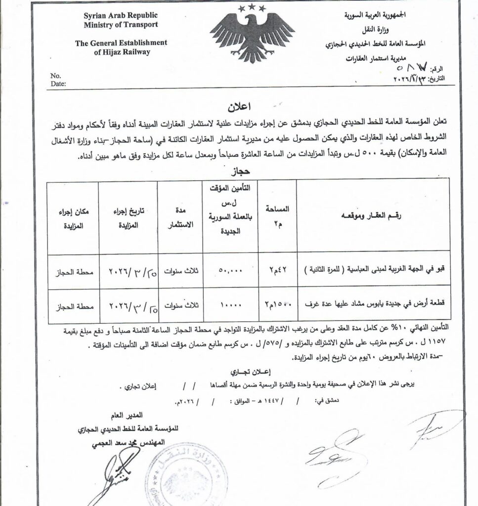 إعلان مزايدات على العقارات الكائنة في في مبنى العباسية و قطعة أرض في جديدة يابوس تصفّح المقالات مزايدة علنية للمرة الأولى في منطقة الميدان اترك تعليقاً إلغاء الردلن يتم نشر عنوان بريدك الإلكتروني. الحقول الإلزامية مشار إليها بـ *التعليق * الاسم * البريد الإلكتروني * الموقع الإلكتروني احفظ اسمي، بريدي الإلكتروني، والموقع الإلكتروني في هذا المتصفح لاستخدامها المرة المقبلة في تعليقي.